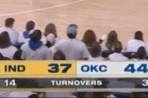 步行者14次失误 雷霆3次