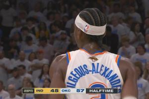 体育资讯06月06日讯 NBA总决赛G1,雷霆半场57-45领先步行者。