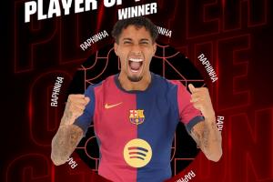 本赛季拉菲尼亚出战36场西甲比赛,贡献18粒进球和9次助攻,帮助巴萨夺得西甲冠军。在最佳球员评选中,拉菲尼亚击败了亚马尔、佩德里、莱万、姆巴佩、维尼修斯、贝林厄姆、伊斯科、桑谢特。