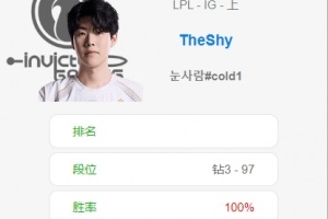 体育资讯6月6日讯 LPL进入短暂休赛,根据韩服排位统计小程序显示,Theshy久违登上韩服打RANK,目前七战全胜,新赛段胜率百分百,暂列钻三97胜点。