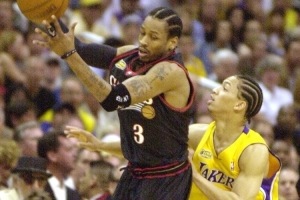 在本场比赛中,艾弗森上演了晃倒泰伦-卢并将其跨越的经典场面。