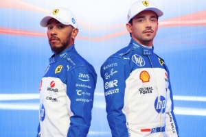 该赛车服以蓝白色调为主,车队车手勒克莱尔和汉密尔顿出镜。在去年迈阿密大奖赛中,法拉利车队也发布了特别版赛车服。