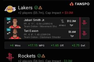 湖人获得:贾巴里-史密斯、塔里-伊森