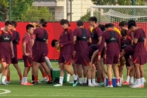 记者宋承良晒出男足训练的一段视频,并报道:“朱辰杰、曹永竞、刘殿座没有参加今晚的合练。”