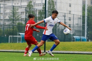 下半场山东泰山B队继续大举进攻,彭啸和王昊斌先后与进球差之毫厘。第83分钟,山东泰山B队的换人调整取得成效,井新博右路45度传中,彭逸翔高高跃起争下第一点,彭啸门前扣过出击的守门员左脚爆射破门,帮助球队客场逆转取胜。