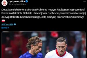 就在莱万发布声明前不到一小时,波兰队也发布了一项官方公告,公告中表示国家队队长更换为泽林斯基。
