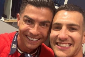 赛后,达洛特在社交媒体上传了与C罗的合影,两人晒出欧国联奖牌,笑容灿烂。
