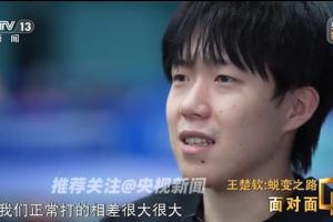 王楚钦:因为那个球再加上球台,跟我们正常打的就是相差很大很大,很离谱的那种,就超出我的认知,那个球台和球。然后再加上那个也是第一场,没太在意,可能光想着那个阿里梅安了,光想着他们一号的左手了。所以说输掉了后,然后再加上单打也输掉了,后面的比赛我记得法兰克福也输掉了。