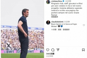 体育资讯6月9日讯 帕尔马主帅齐沃即将执教国米,他在社交媒体上发文,与帕尔马告别。