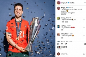 体育资讯6月9日讯 迪奥戈-若塔今天在Instagram晒出自己与欧国联奖杯的合照,并发文庆祝胜利。