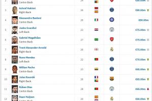 体育资讯06月09日讯 德转更新西甲联赛身价,巴萨18岁小将库巴西8000万欧元,成为世界足坛身价第一中卫,萨利巴和阿什拉夫、巴斯托尼同样8000万欧元。以下是足坛后卫身价前15球员: