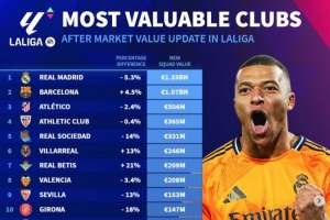 3、马竞:5.04亿欧(-2.4%)