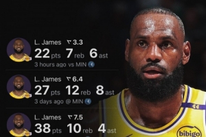 据统计,本轮系列赛詹姆斯场均可以砍下25.4分9篮板5.4助攻,场均抢断+盖帽3.8次,真实命中率60.1%。
