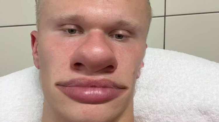 赛后,哈兰德更新社媒晒出带大鼻子+香肠嘴特效的搞怪自拍,配文“有点累”。