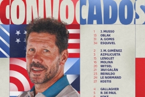 前锋:7-格列兹曼、9-索尔洛特、10-科雷亚、18-C-马丁、19-阿尔瓦雷斯、22-朱利亚诺-西蒙尼