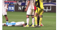 印尼球员迪克斯受伤被担架抬出!禁区争顶时有头碰头