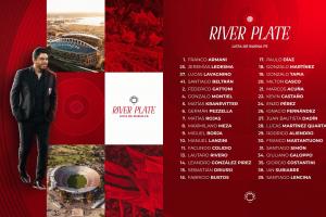 中场:5-克拉内维特尔、10-兰奇尼、18-贡萨洛-马丁内斯、22-卡斯塔尼奥、24-恩佐-佩雷斯、26-伊纳西奥-费尔南德斯、29-阿利恩德罗、30-马斯坦托诺、31-圣地亚哥-西蒙、34-加洛珀、35-乔治-康斯坦丁、39-伦奇纳