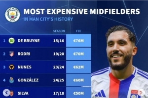 体育资讯6月11日讯 曼城签下里昂攻击手谢尔基,德国转会市场统计了曼城引进中场球员的转会费,并列出榜单,谢尔基3600万欧排名第8位。