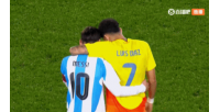下半场比赛开始前,梅西和迪亚斯搂着进场