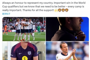 凯恩社媒晒出比赛照片,并写道:“能够代表祖国出战始终是一种荣幸。我们在世界杯预选赛中取得重要胜利,但我们深知需要做到更好——每一次集训都至关重要。感谢大家的支持。”