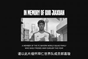 在片尾,拜仁官方对前拜仁世界队成员郭嘉璇进行缅怀。今年3月,18岁的郭嘉璇在2月初随北京足协前往西班牙集训,在友谊赛中头部受伤昏迷被诊断为脑死亡,随后回国治疗抢救无效去世。