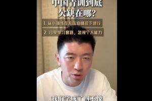 虽然听起来中国的青训围绕着比赛会有很多针对性的套路,训练也会有练习,整体和个人的听起来是个非常完美的体系,但是我们回想起来,我们学成了四不像。个人能力,没有日本球员那么精细,身体条件,又没有欧洲球员那么好,比赛能力,又没有西班牙球员那么强,所以我个人认为现在的国内青训应该先完善个人能力等。