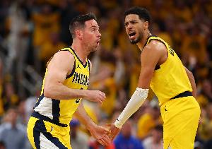 体育资讯6月12日讯 NBA总决赛G3,步行者半场64-60领先雷霆。