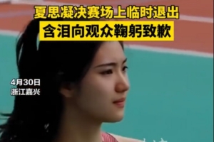 体育资讯5月1日讯 在昨天进行的全国田径大奖赛嘉兴站女子100米栏决赛中,夏思凝赛前因突发伤病无奈退赛,含泪向观众鞠躬致歉。
