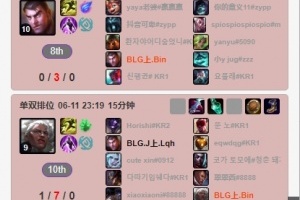体育资讯6月12日讯 昨日Bin登上韩服帐号玩了三局排位,但是后两局表现欠佳,狼母1-7,杰斯0-3。