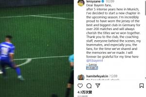 体育资讯06月12日讯 萨内社媒发文,告别拜仁球迷。