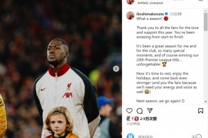 体育资讯6月12日讯 利物浦后卫科纳特社媒发文,感谢球迷本赛季的支持。