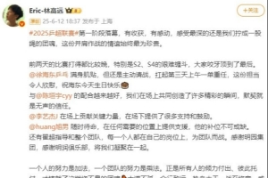 2025乒超联赛第一阶段落幕,有收获,有感动,感受最深的还是我们拧成一股绳的团魂,这份并肩作战的情谊始终最为珍贵。