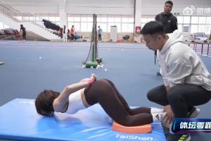 体育资讯05月01日讯 央视《体坛零距离》拍摄到了一段吴艳妮训练的镜头,镜头中吴艳妮双手后背,利用核心力量连续向前直至与地面平行。旁边的教练说,吴艳妮的这个动作在国内属于天花板级别。