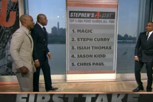 体育资讯6月13日讯 今天,NBA名嘴A-史密斯在《First Take》节目中当着魔术师的面分享了自己心目中的历史前五控卫。