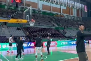 今天广厦男篮将客场对阵辽宁男篮,赛前球队来到球场提前热身,吴骁篮下练习单手投篮,布朗三分手感火热。