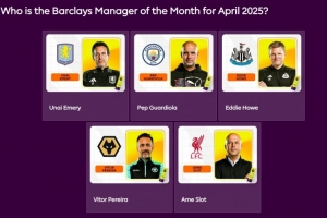 体育资讯5月1日讯 英超公布了4月最佳主教练候选名单,斯洛特、瓜迪奥拉、埃梅里入围。