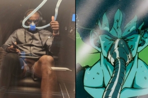 照片中,杰伦-布朗戴着面罩,冲镜头伸出了大拇指。