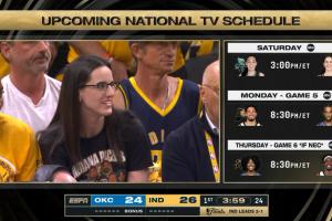 链接>>>玄学?全胜!狂热球星凯特琳-克拉克现场观战步行者季后赛8胜0负