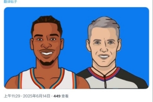 赛后,独行侠自媒体MavsMuse晒出了亚历山大和主裁福斯特的图片,调侃道:“总决赛战至2-2,雷霆双核今晚太无解了...”