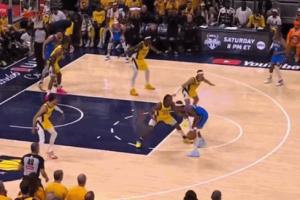 这不是一个投篮犯规,但因为步行者已经犯满,所以亚历山大获得2次罚球