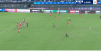 比赛补时第1分钟,浙江队在1-2落后的情况下由弗兰克头球打入一球,但VAR判定陶强龙犯规在先,进球无效。