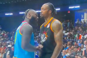 体育资讯06月15日讯 今日BIG 3比赛中,前NBA球员兰斯-斯蒂芬森与前NBA球员霍华德发生口角后互相推搡,随后逐渐演变为抱摔。