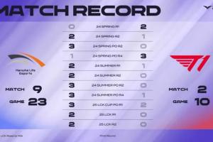 体育资讯6月15日讯 在2025 LCK MSI之路HLE对战T1赛前,LCK直播流贴出了HLE对战T1的近期战绩,具体如下:自2024年开始HLE对战T1战绩来到大场9-2,小场23-10;自2024年夏季赛开始HLE七连胜。