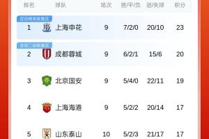 体育资讯05月01日讯 中超第10轮今日6场战罢,最新积分榜形势如下。国安击败海港升至前三,海港、泰山同积17分分列4、5位。浙江、津门虎和英博分列6-8名。