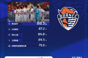 体育资讯6月15日讯 中超官方公布第14轮传球成功率榜,青岛海牛88.5%居首,国安第二、三镇第三。