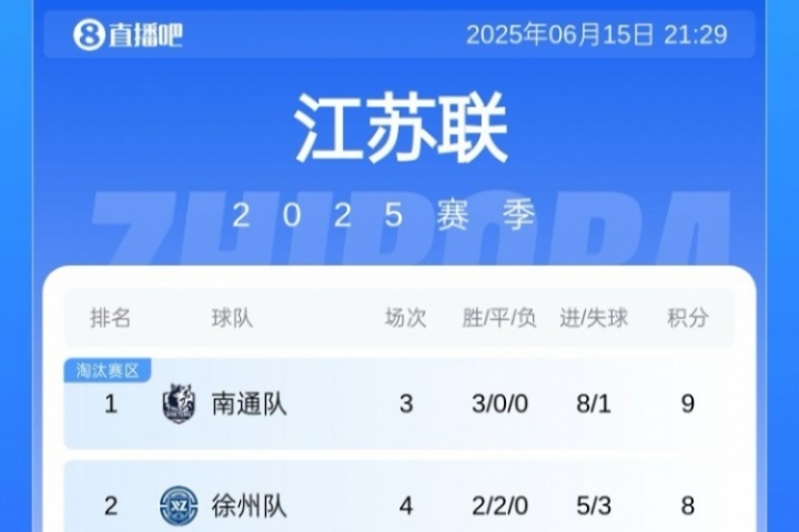 体育资讯06月15日讯 苏超第四轮今日结束三场比赛,常州0-2不敌无锡,遭遇四连败,徐州1-0战胜镇江、连云港1-1战平苏州。最新积分榜如图。