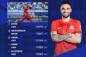 河南外援纳萨里奥、长春亚泰的朴韬宇、成都蓉城的元敏诚、浙江的李提香均上榜,榜单详情见上图。