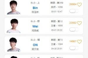 体育资讯5月1日讯 LPL登峰组明日BLG将迎战WBG,今日BLG官宣北川加入队伍,根据韩服排位统计小程序显示,Wei疑似缺席训练赛晚间独自在韩服Rank。
