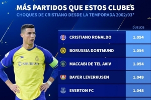 体育资讯6月16日讯 德国转会市场统计C罗2002-2003赛季以来的出场次数,并与俱乐部对比,C罗出战1054场比赛,与多特一样多,多于勒沃库森、埃弗顿等俱乐部。