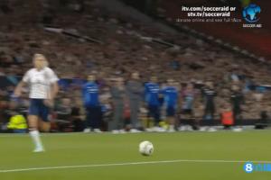 比赛尾声时段,在一次拼抢中,博努奇毫不留情地朝前英格兰女足队长斯蒂芬-霍顿放铲,得球后扬长而去,而后者则痛苦地倒在场内。